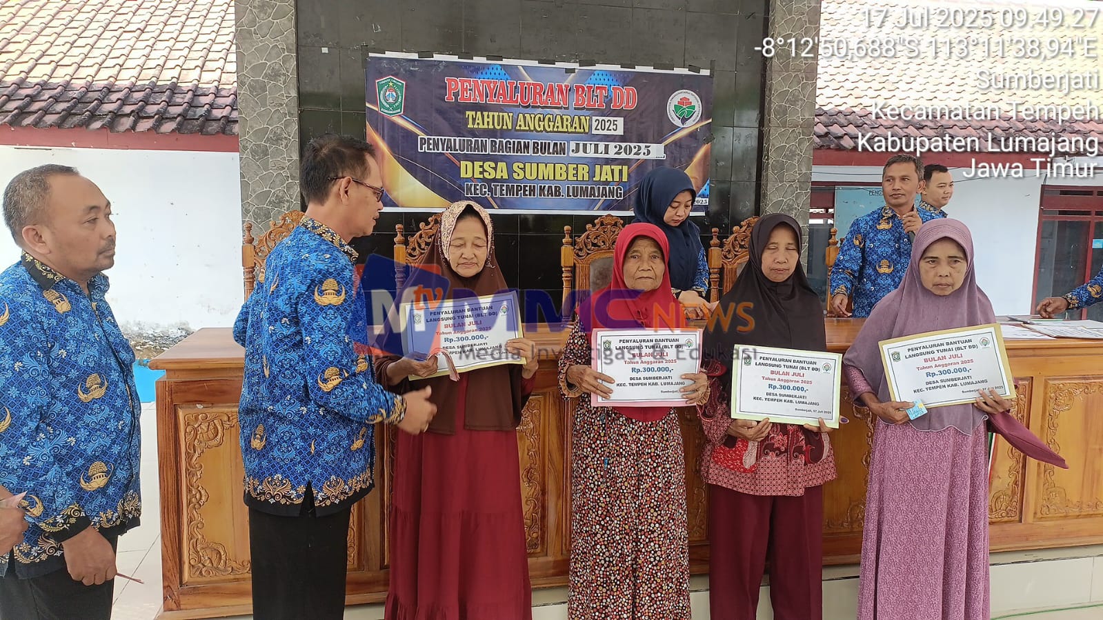 Pemerintah Desa Sumber Jati, Kecamatan Tempeh, Kabupaten Lumajang, menyalurkan Bantuan Langsung Tunai (BLT) Dana Desa untuk bulan Juli 2025 kepada 26 Keluarga Penerima Manfaat (KPM), Jumat (Juli 2025). Setiap KPM menerima bantuan sebesar Rp300.000 yang berasal dari alokasi Dana Desa Tahun Anggaran 2025.