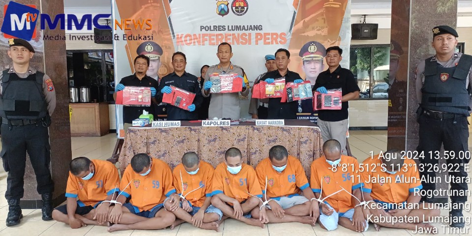 Satuan Reserse Narkoba Polres Lumajang berhasil mengungkap lima kasus peredaran narkotika jenis sabu dan obat terlarang sepanjang bulan Juli 2024. Dalam pengungkapan tersebut, delapan tersangka berhasil diamankan beserta barang bukti berupa 18,5 gram sabu dan 971 butir obat keras berbahaya (okerbaya).