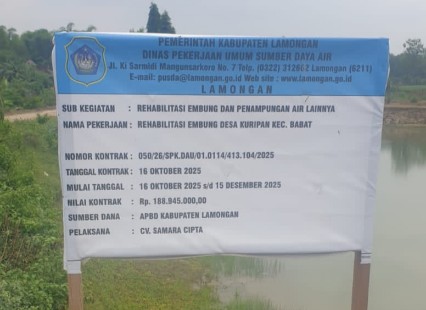 Lamongan | MMC – Tim investigasi DPP LSM Jerat Indonesia, menduga adanya Suplay penggunaan Solar bersubsidi pada proyek rehabilitasi embung penampungan air di Dusun Mojosari, Desa Kuripan, Kecamatan Babat, Kabupaten Lamongan Jawa Timur.