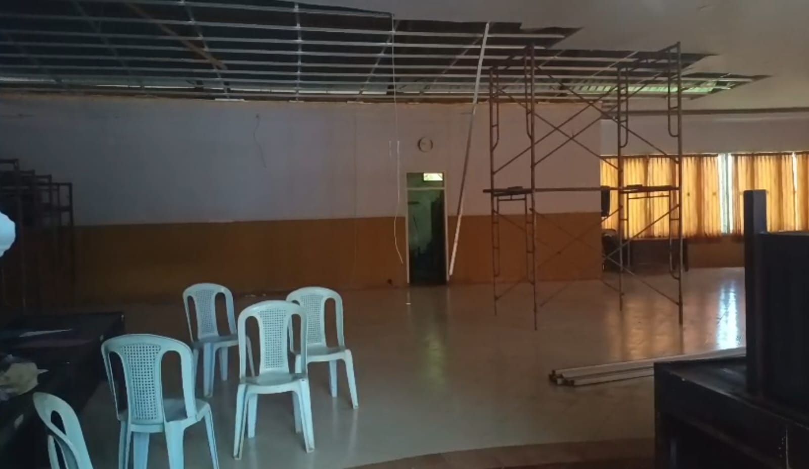 Namun, pasca penangkapan yang sempat menghebohkan publik itu, tidak lagi terlihat aktivitas pekerja di lokasi. Pantauan media, hanya tampak tumpukan eternit plafon, sementara pintu aula tertutup rapat. Kondisi bagian dalam gedung pun disebut belum layak digunakan.