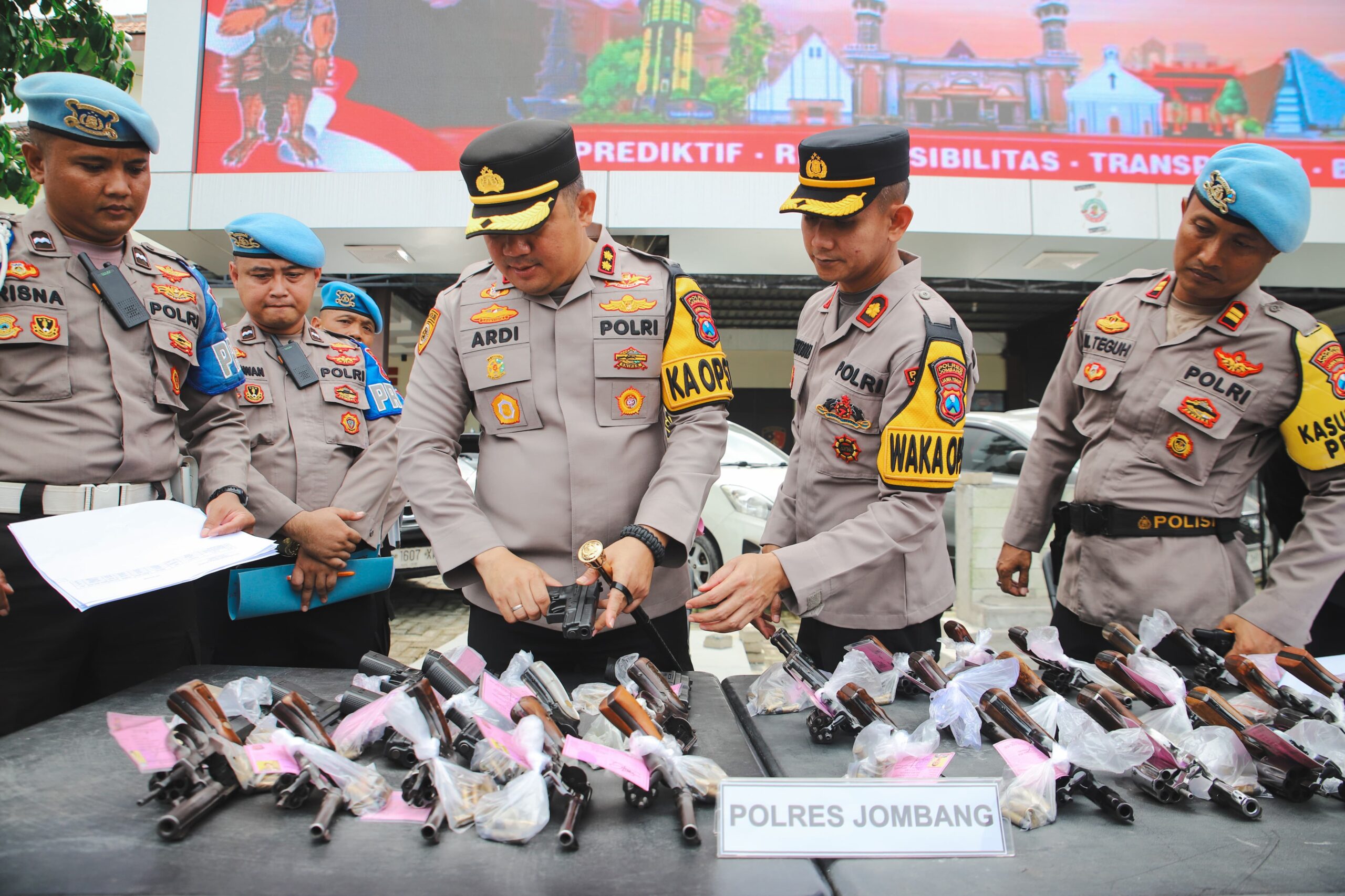 Menurut Kapolres Jombang, dari 98 anggota yang di pinjam pakaikan senjata api, ada 12 unit Senpi yang ditarik karena pemegang senpi pindah tugas ke fungsi pembinaan. Sedangkan Senjata api hanya dipinjam pakaikan kepada personel yang bertugas di fungsi operasional.