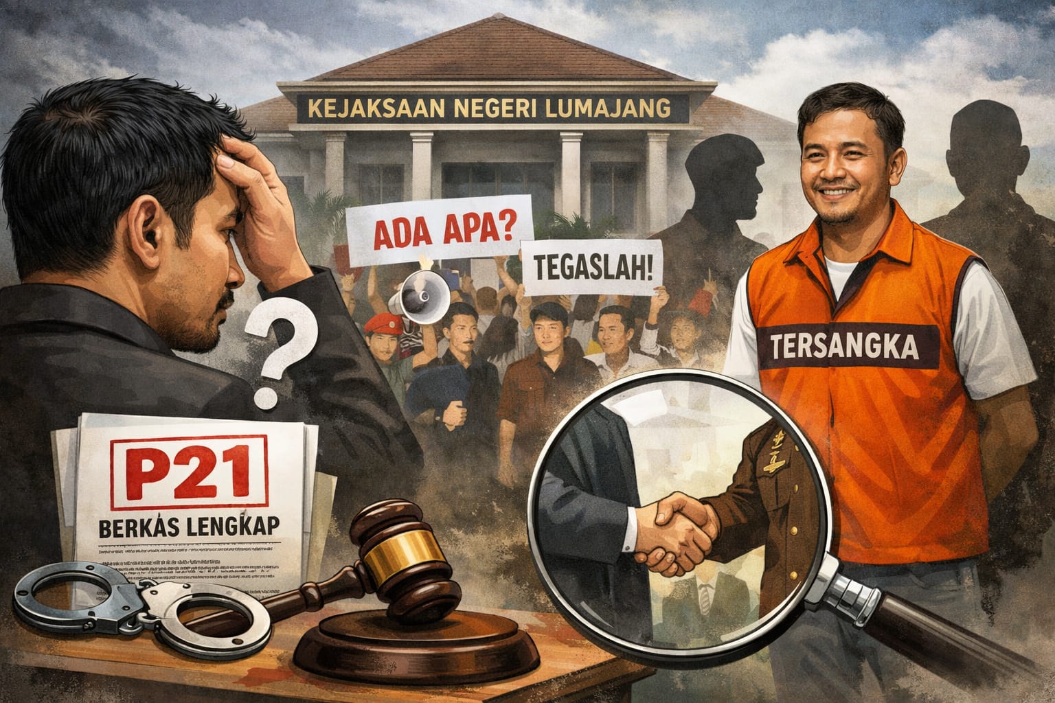 Penanganan perkara dugaan penggelapan sewa lahan seluas lebih dari dua hektare yang melibatkan mantan Kepala Desa Kalidilem, Muhammad Abdullah, kembali menjadi sorotan. Meski berkas perkara telah dinyatakan lengkap (P21) dan memasuki tahap II dengan pelimpahan tersangka serta barang bukti ke Kejaksaan Negeri Lumajang, namun tersangka tidak dilakukan penahanan. Kondisi ini memicu pertanyaan dari pihak pelapor terkait konsistensi penegakan hukum.