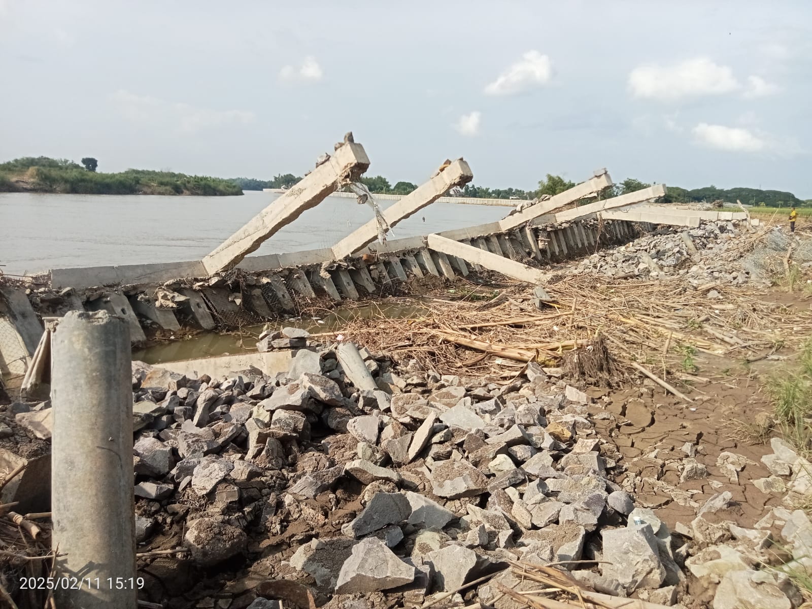 “Dari panjang total yang sleding kurang lebih 10%, sejak di foto yg di tayang media itu sudah di lakukan tindakan pengamanan matrial, seperti bronjong kita angkat, pemeliharaan kita hentikan sementara karena nunggu masa panen, cuaca dan kondiai tanah untuk alat berat blm memungkinkan, pemborong sudah siap perbaikan sesuai jastek, dukungan pabrikan terkait beton dan alat berat sudah ada, dan di lokasi masih stanbay 2 alat exca yg di parkir dekat kantor direksi. Ini masa pemeliharaan 1th untuk perbaikan kita batasi 150 hr selesai sesuai kondisi cuaca ( banjir/ air bengawan tinggi),” tulis Iwan di WhatsApp.