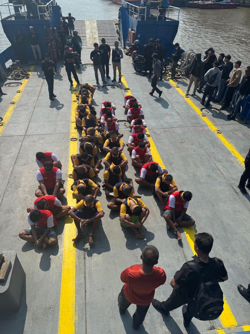 Sebanyak 37 warga binaan high risk Jawa Timur tiba di Lapas Super Maksimum Security Pulau Nusakambangana, Minggu (28/7). “ mereka adalah warga binaan yang berdasarkan asesement, penyidikan dan penyelidikan termasuk dalam kategori berisiko tinggi, baik dalam mengganggu keamanan dan berpotensi merusak program pembinaan bagi warga binaan lainnya ,” ungkap Kadiono, Kepala Kantor Direkrorat Jenderal Pemasyarakatan Jawa Timur.