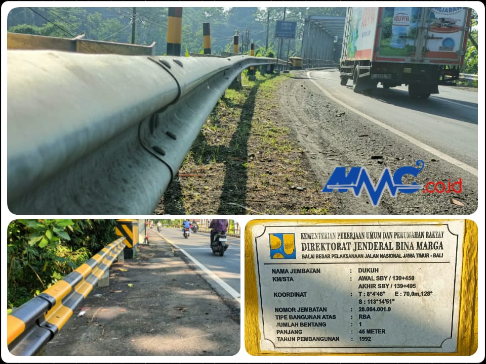 Kondisi sambungan guardrail atau pelindung sisi jalan di Jembatan Dukuh, wilayah Wonorejo–Lumajang, menjadi sorotan tajam. Pasalnya, sambungan pelat baja (beam) di lokasi tersebut dipasang melawan arah lalu lintas, sehingga justru berpotensi menjadi sumber bahaya bagi pengendara.