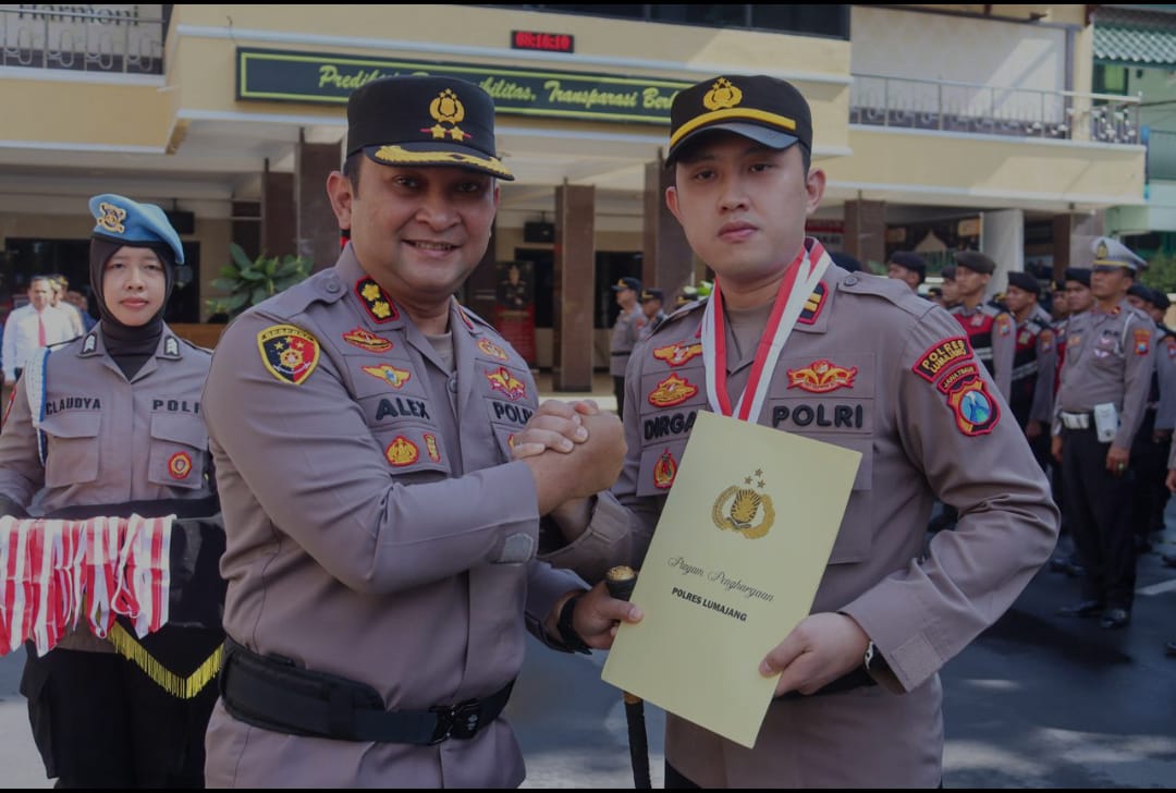 Kapolres Lumajang AKBP Alex Sandy Siregar S.I.K., S.H., M.H. memberikan penghargaan kepada Kapolsek Randuagung atas kinerja dan inovasi jajaran Polsek Randuagung dalam meningkatkan pelayanan publik. Penghargaan tersebut diserahkan pada Senin, 1 Desember 2025, di halaman Mapolres Lumajang.