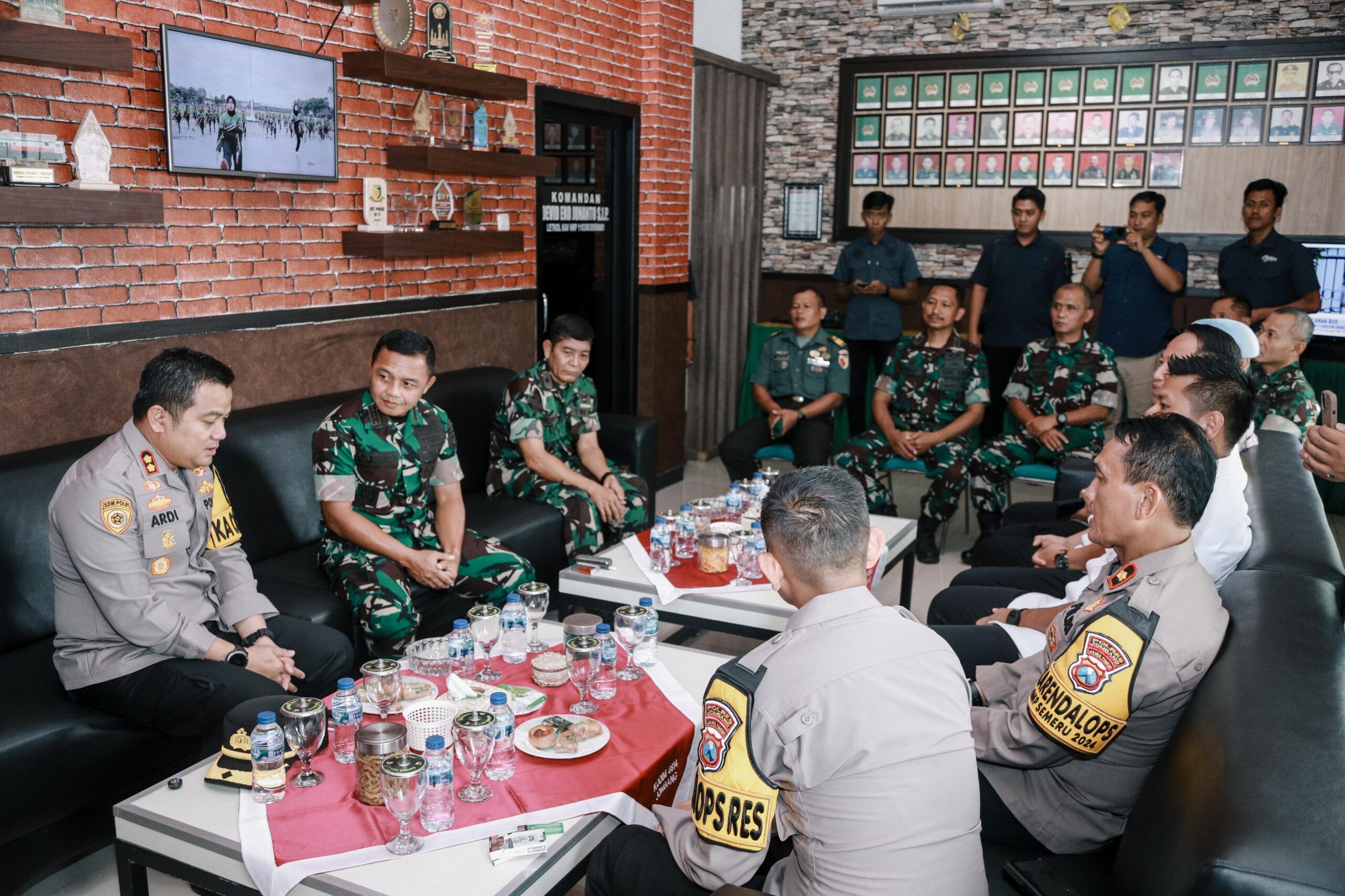 Dalam kunjungan tersebut Kapolres Jombang disambut hangat oleh Dandim 0814 Letkol Kav Devid Eko Junanto, S.I.P. bersama Pejabat Utama Kodim bertempat di Ruang Lobby/transit Makodim 0814 Jombang.