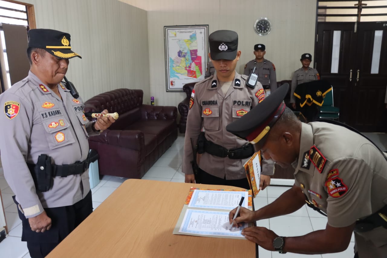 Pada kesempatan ini kapolres juga mengucapkan selamat datang dan selamat bergabung di Polres Mappi kepada pejabat baru AKP Wisan Krebru, S.H kiranya dapat menjalankan tugas dengan penuh rasa tangung jawab.