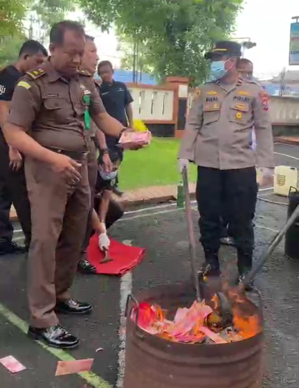 “Berdasarkan perintah hakim bahwa barang bukti yang kita saksikan ini dirampas untuk dimusnahkan dengan tata cara yang berbeda. Ada yang dibakar, ada yang dilarutkan dalam cairan,” pungkasnya.