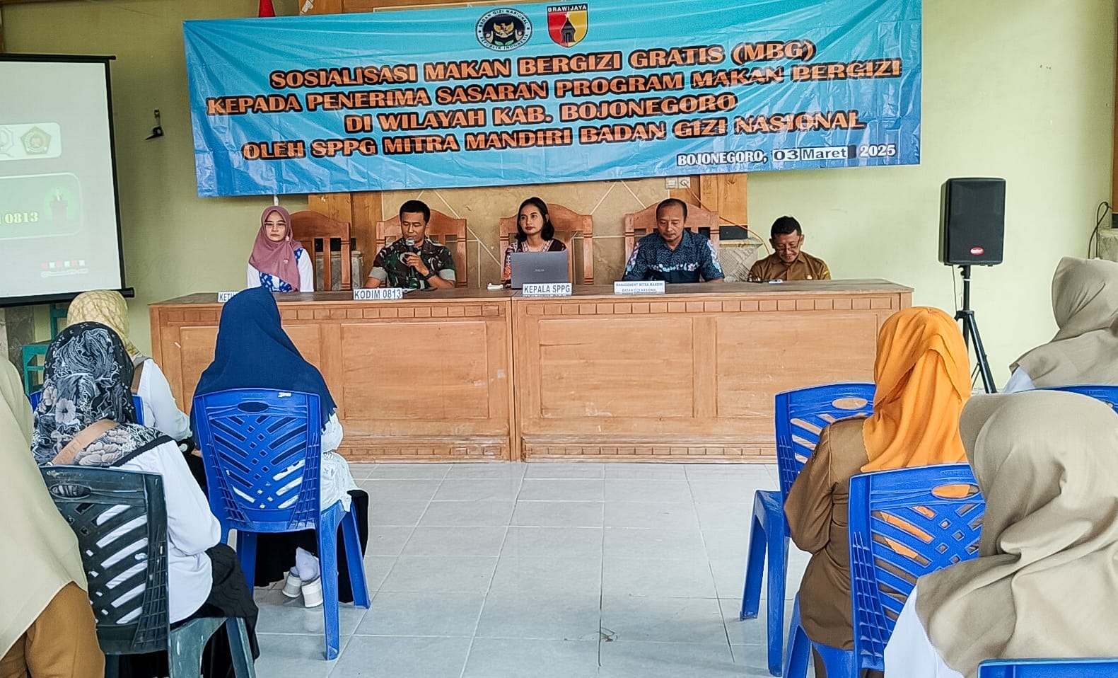 Sosialisasi program Makan Bergizi Gratis (MBG) yang dihadiri Bati Puanter Staf Teritorial Kodim 0813 Bojonegoro, Ketua PERSAGI Bojonegoro, Kepala SPPG Taman Rajekwesi, para Kepala Sekolah/Lembaga mulai tingkat PAUD, SD, SMP, SMA dan Sederajat, serta Kepala Desa dan Kader Posyandu ini merupakan salah satu langkah pemerintah dalam rangka meningkatkan asupan gizi dan mengurangi stunting.