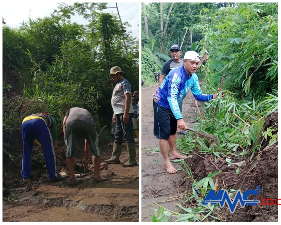 Kepala Desa Barat, Julianto, bersama perangkat desa dan warga setempat langsung melakukan kerja bakti untuk membersihkan material longsor. Meski tanpa alat berat, mereka berupaya membuka jalan dengan peralatan seadanya.