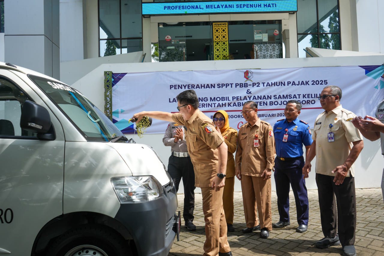 Bojonegoro – Pj. Bupati Bojonegoro menyerahkan SPPT PBB-P2 Tahun Pajak 2025 dan Melaunching Mobil Pelayanan Samsat Keliling Pemkab Bojonegoro. Acara dilaksanakan di Gedung Pemkab Lt.2 pada Senin pagi (10/02/2025).