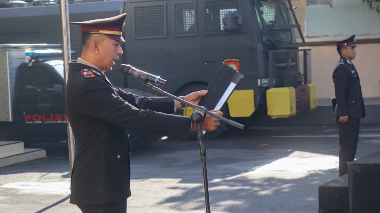 Upacara berlangsung khidmat dipimpin oleh Kabag SDM Polres Lumajang, Kompol Diding Wahyudi, S.H., M.H., dan diikuti Pejabat Utama Polres, para Kapolsek jajaran, anggota Polri, serta PNS Polres Lumajang.