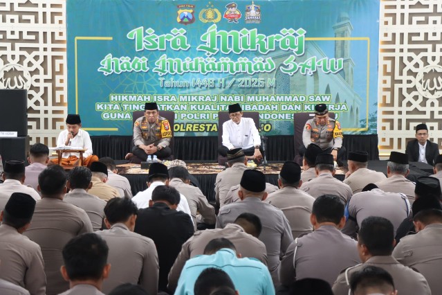 Sementara Prof. Dr. H. M. Ali Aziz dalam pengajian Isra Mi’raj tahun 2025 di Masjid Al Ikhlas Polresta Sidoarjo mengingatkan, agar momentum Isra Mi’raj yang diperingati setiap tahun dijadikan introspeksi diri guna meningkatkan iman, takwa serta amal ibadah. Baik itu ibadah dengan Allah SWT maupun terhadap sesama insan manusia. (Sis)