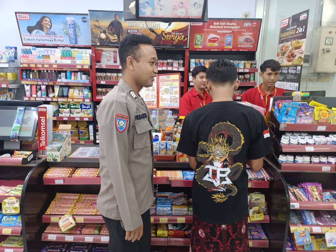 Cegah gangguan kamtibmas dan tindak kriminalitas, anggota Polsek Randuagung melaksanakan patroli pertokoan di wilayah Kecamatan Randuagung, Kabupaten Lumajang, Selasa (2/4/2024), sekaligus dialogis dan imbauan kamtibmas dengan karyawan dan pengunjung toko.