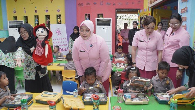 “Kami ingin memastikan anak-anak mendapatkan asupan gizi yang cukup agar mereka dapat tumbuh sehat dan cerdas,” ungkap Ny. Ade Imam Sugianto.
